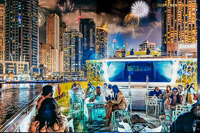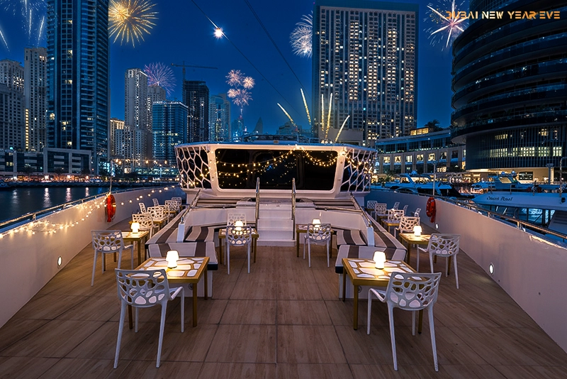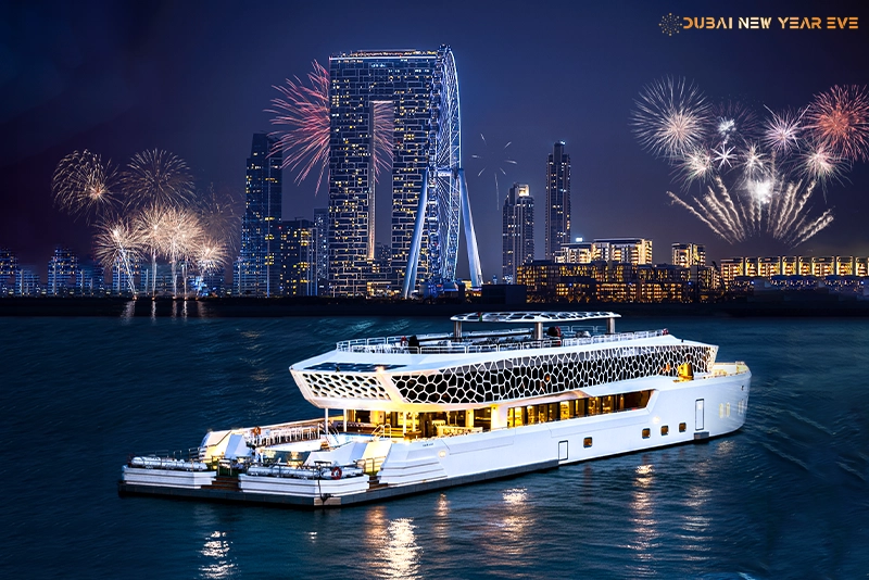 The New Year Mega Yacht will sail near Atlantis-The Palm, Burj Al Arab, Burj Khalifa, and JBR. You will also witness mesmerizing fireworks across the Dubai skyline.